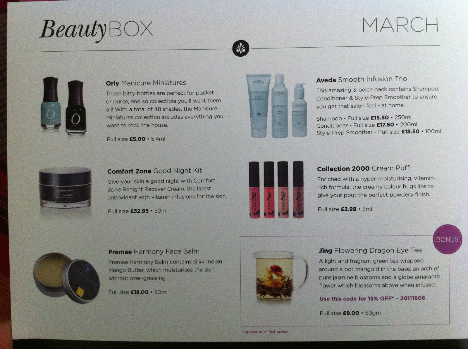 I’m sure it was the Steamcream that was responsible for the February box selling out so quickly. The quirky tins were really cool and I love mine. I’m not sure how true it is but apparently Streamcream is the sister company of Lush. Even if it it’s not true I love the fact that this cream is made of steam and absorbs really well into my skin. It’s not the cheapest of moisturisers, it now retails at £12.95 (they’ve apparently hiked the price up from £10), but it definitely earns a place in my handbag.